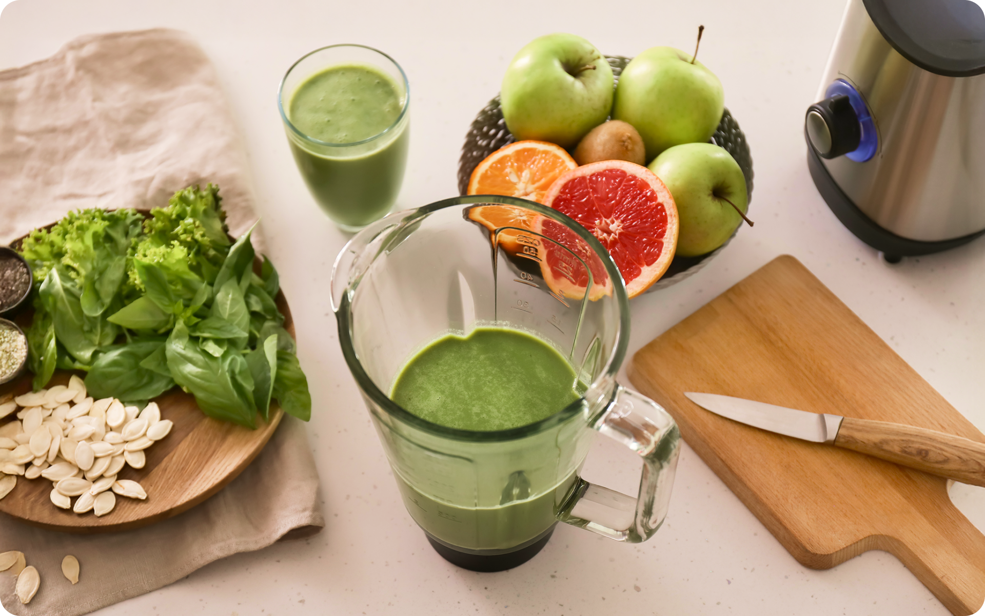 This green smoothie recipe makes for a quick and nutritious breakfast you can easily take with you when you’re on the go.