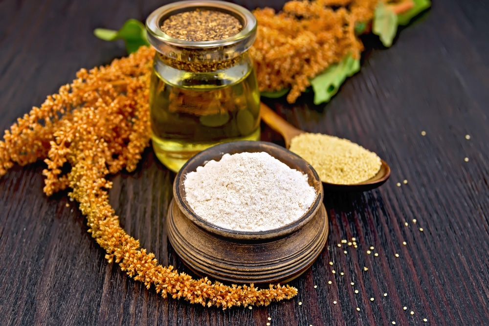 Stirring amaranth flour into your morning oatmeal or yogurt can help you feel full longer and provide some extra fiber, protein, and nutrients throughout the day.