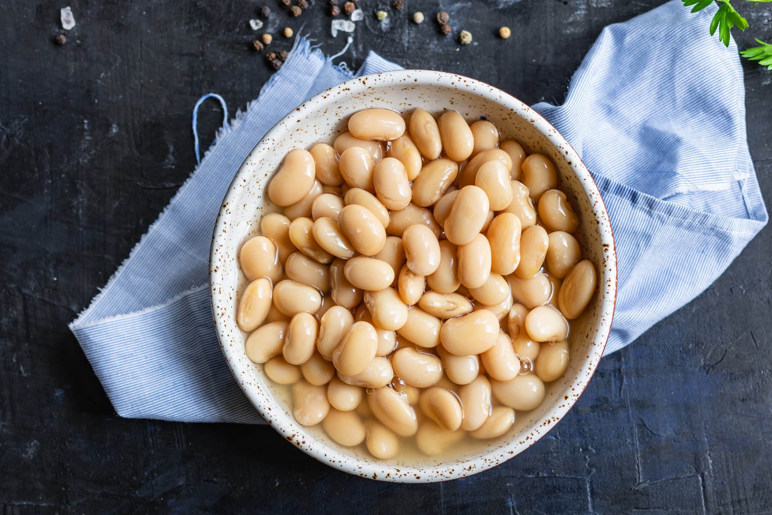 A cup of cooked and unsalted white beans won’t work with a 6-serving recipe because it has 44.9 g total or 33.6 g of net carbs (20). This equals 5.6 g of net carbs per serving and counts too much toward your daily net carb allowance for one ingredient.