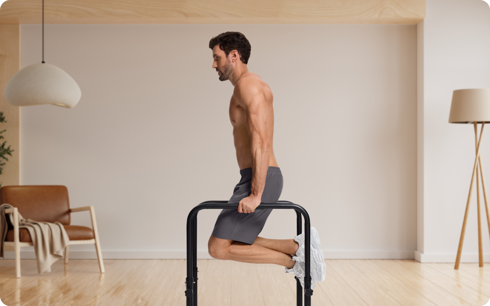 These compound movements target multiple muscle groups simultaneously while requiring nothing more than parallel bars or a sturdy surface. Dips challenge your triceps, chest, and shoulders through a full range of motion, which makes them invaluable for building upper-body strength and size.