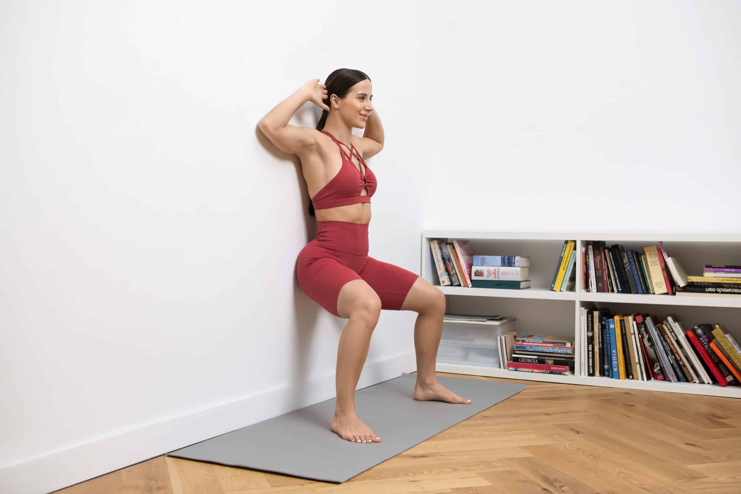 Wall sits can be performed anywhere there’s a flat, sturdy wall, making them a convenient addition to your at-home or on-the-go workouts. No specialized equipment is required, and you can easily modify the intensity by adjusting the duration of the hold.