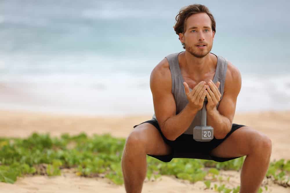 The squat is another perfect exercise for men to do at home. It actively engages and works the glutes, quads, and hamstrings. There are various squat variations men can do. However, it is essential to start with the basic squat.