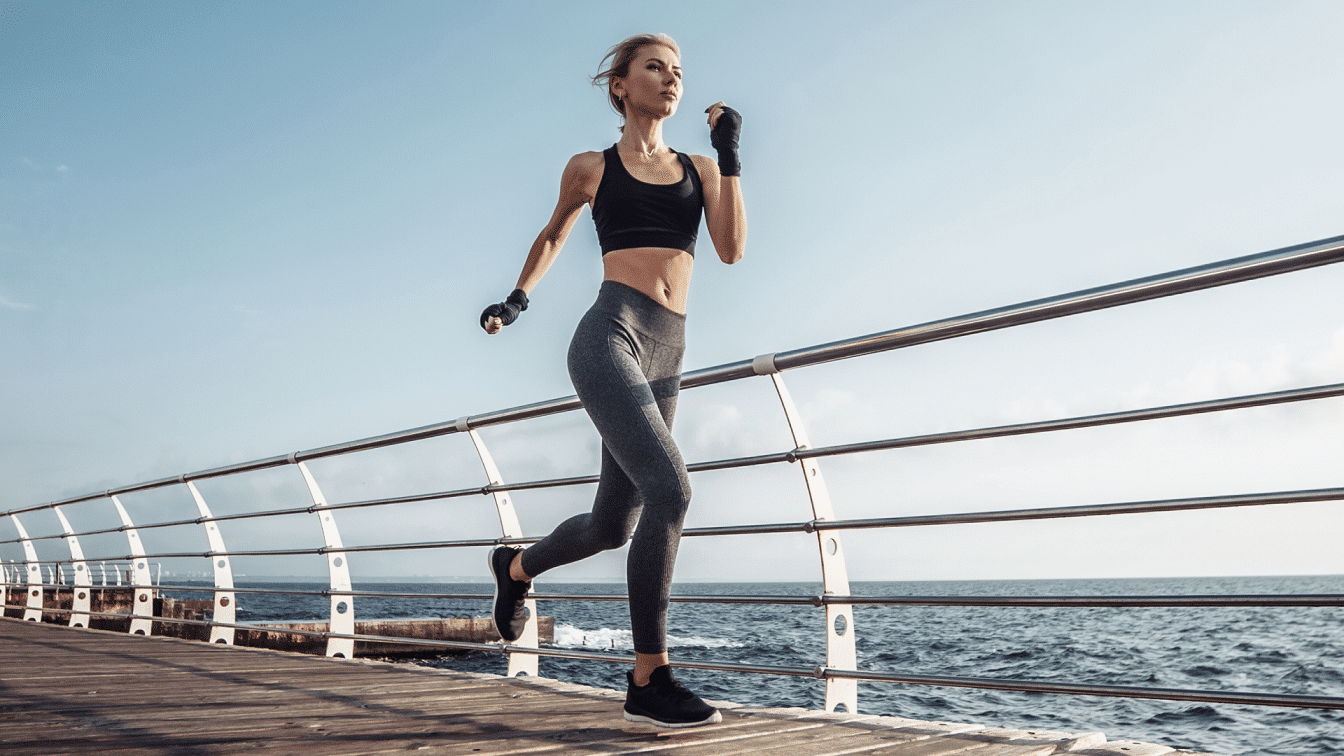 A good running form helps prevent many of the most common injuries associated with this sport and helps you run faster and more efficiently. Focus on your posture — shoulders rolled back, chin up, and core engaged— while also paying attention to your foot strikes; land lightly on the balls of your feet while rolling forward from heel-to-toe (9).