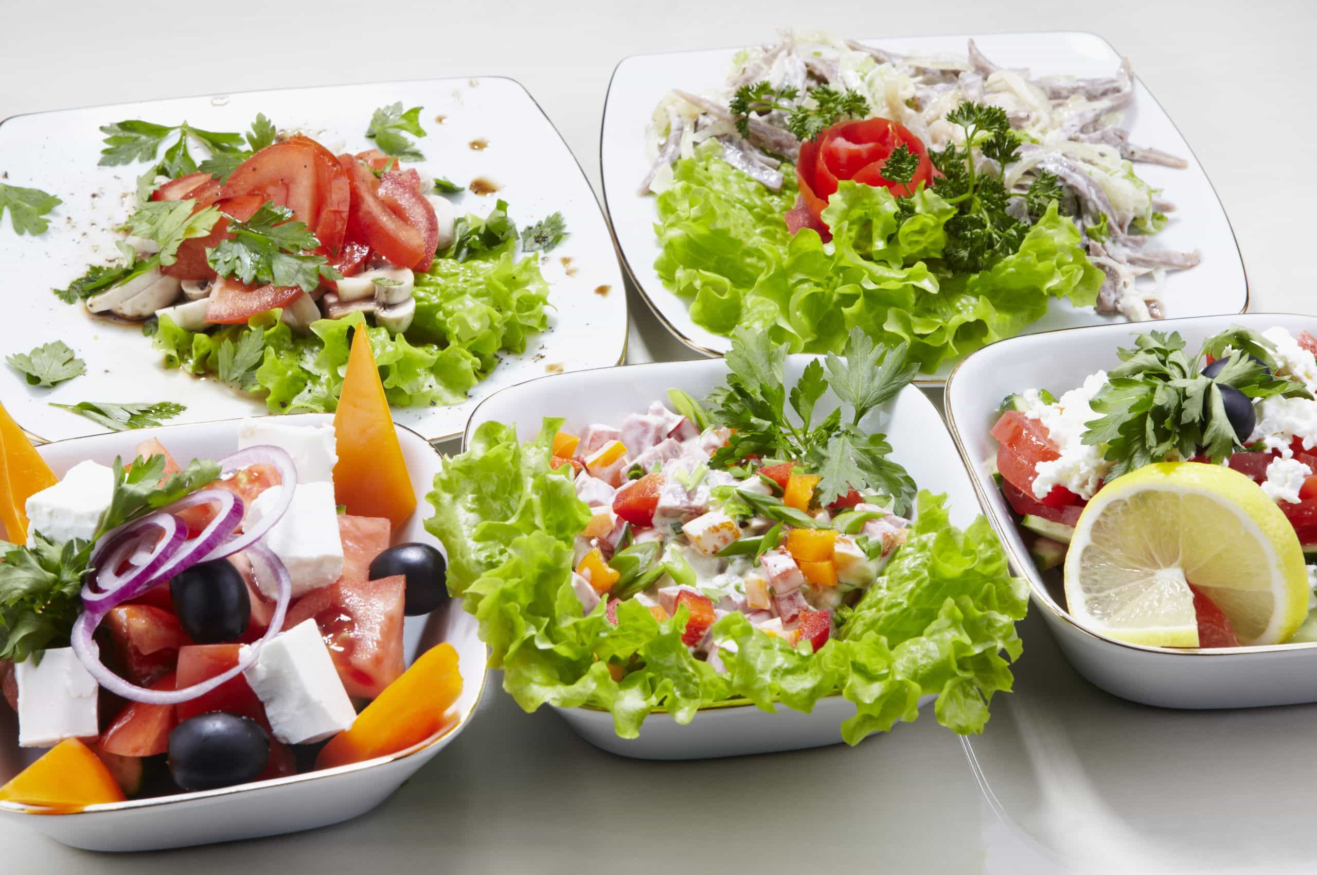 The most common salads from a variety of cuisines are:
