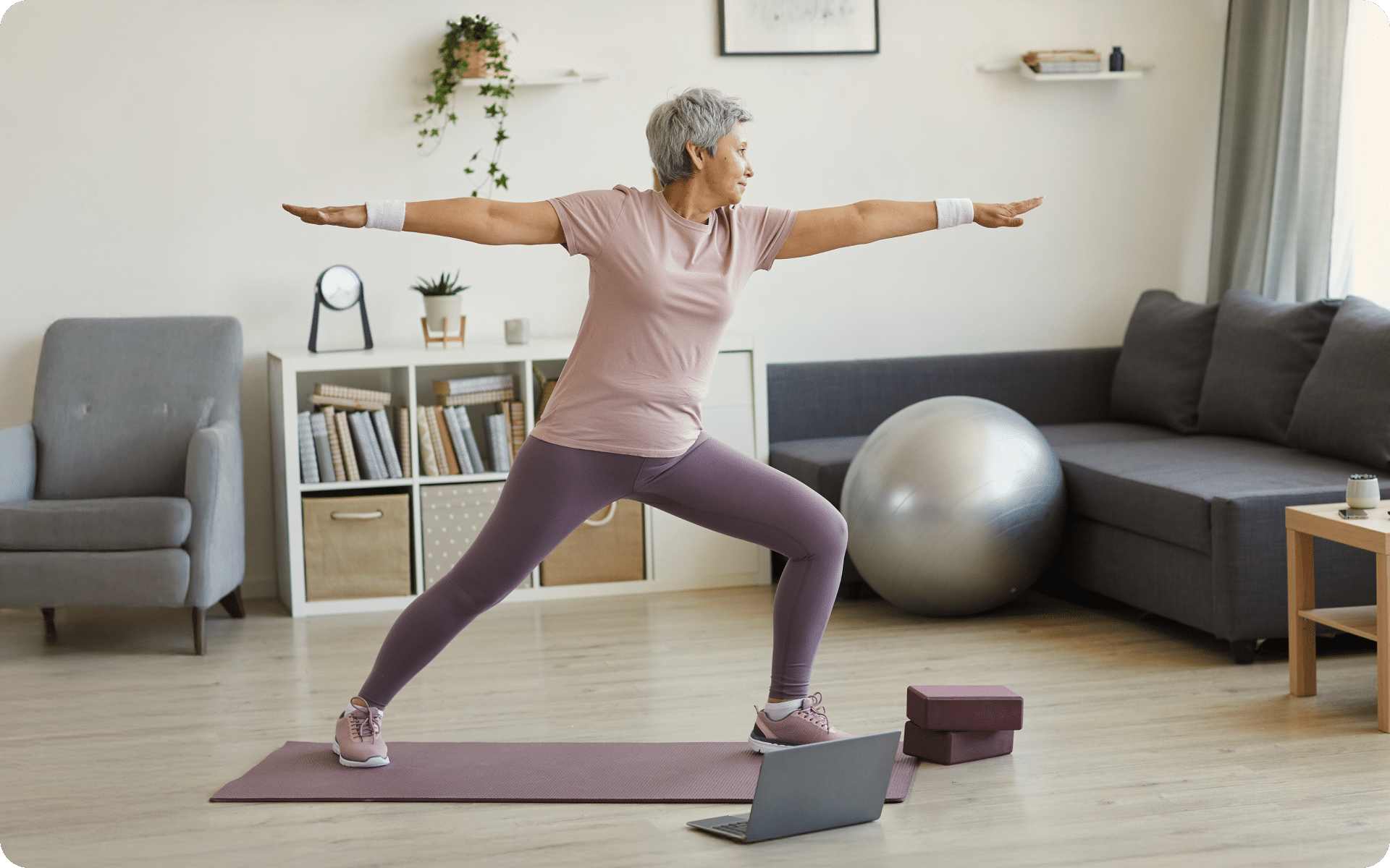 Yoga involves holding poses that require controlled engagement of muscles. For example, static balance exercises such as tree pose and warrior I strengthen the legs and core, which are essential for standing firm and recovering from wobbles. These are known as weight-bearing exercises, which also help maintain muscle mass over time (3, 8).