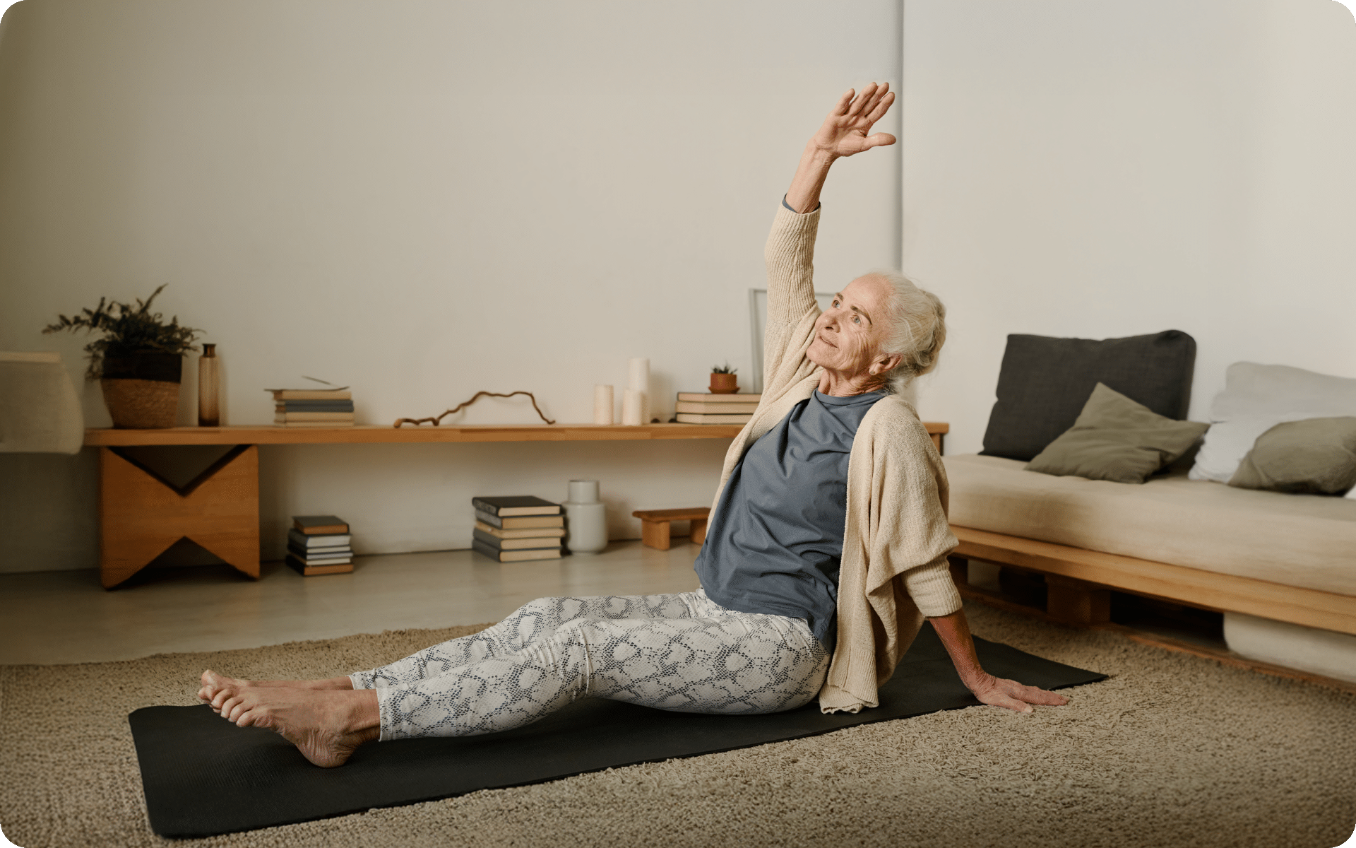 Yoga for seniors at home is best for reducing stress. It also helps boost mood to enhance your overall quality of life.